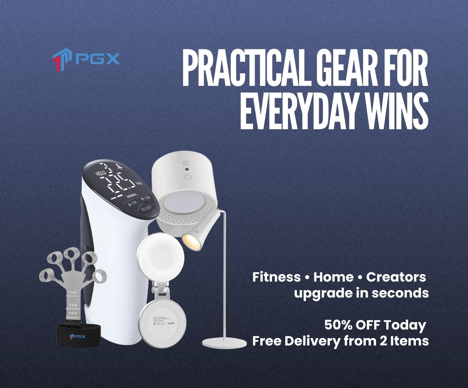 PGX™ focuses on practical upgrades — clean design, dependable performance, and effortless usability. Every product is selected to solve real daily needs across Fitness, Home, and Creators — with simple setup and a premium, no-fuss experience.