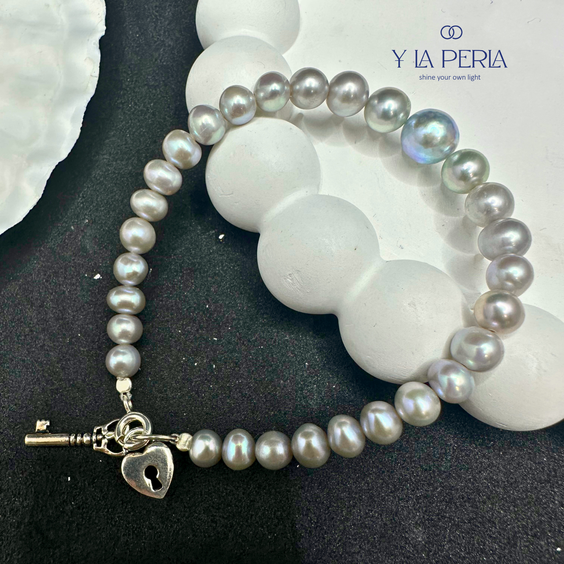 Featuring a key and heart-shaped lock clasp, this design represents the bond of love and connection. Paired with luminous pearls that attract luck, peace, and prosperity, it becomes a truly meaningful gift for your loved one — a token of affection and timeless elegance.