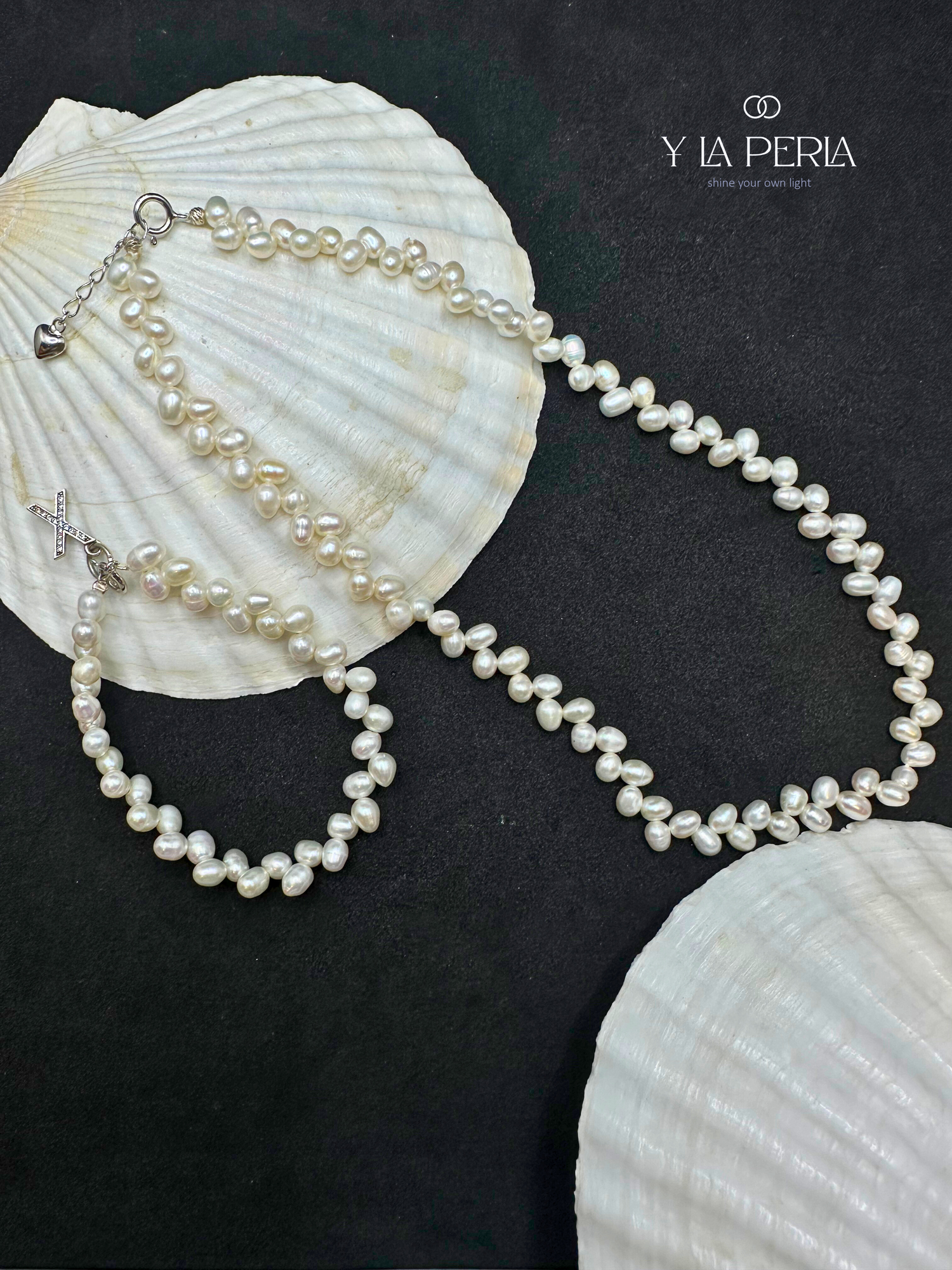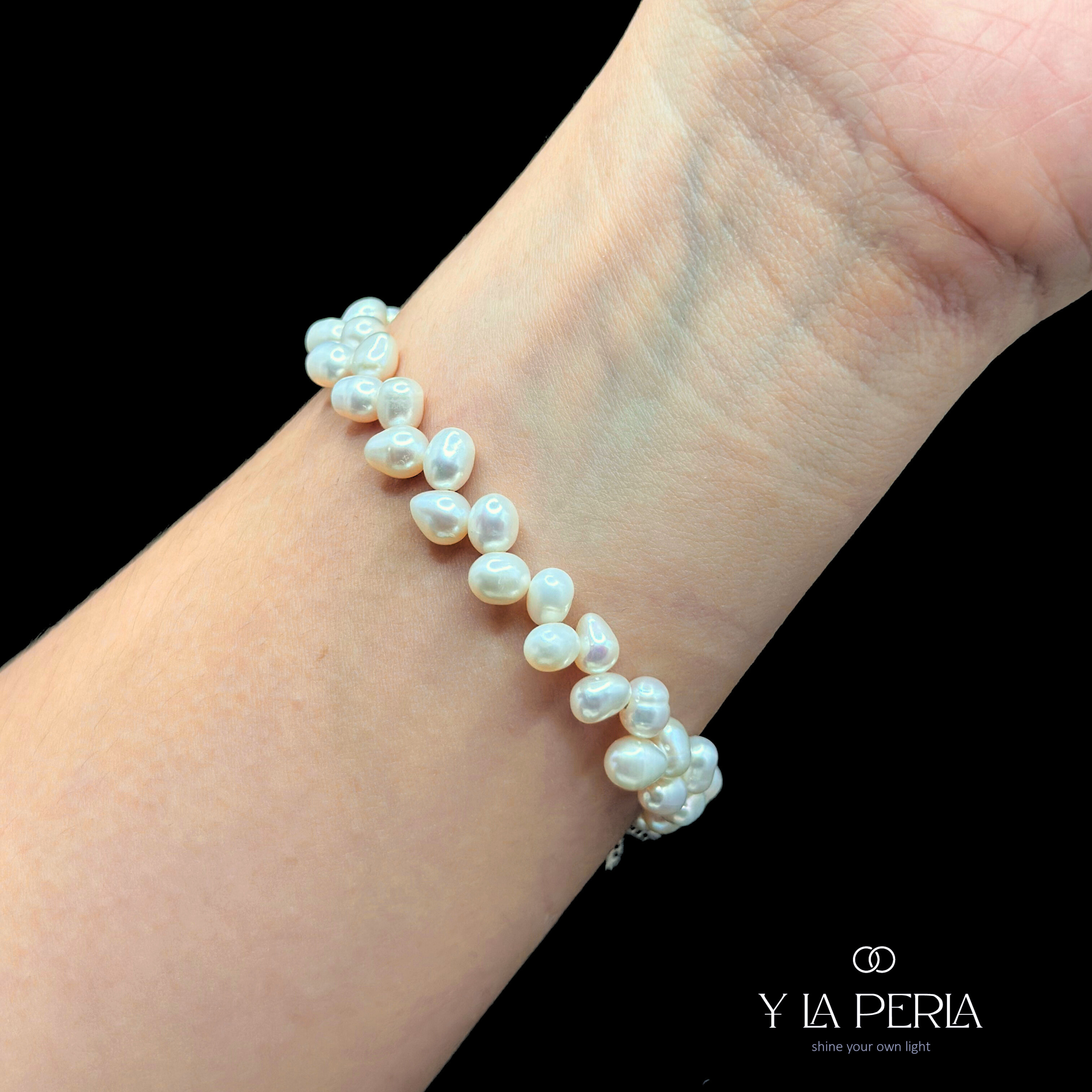 Gently wipe your pearls with a soft cloth after each wear. Avoid contact with perfumes, lotions, water, or harsh chemicals, as moisture may weaken the stringing. Always store them in our dedicated Y La Perla pouch to keep them safe and lustrous.
