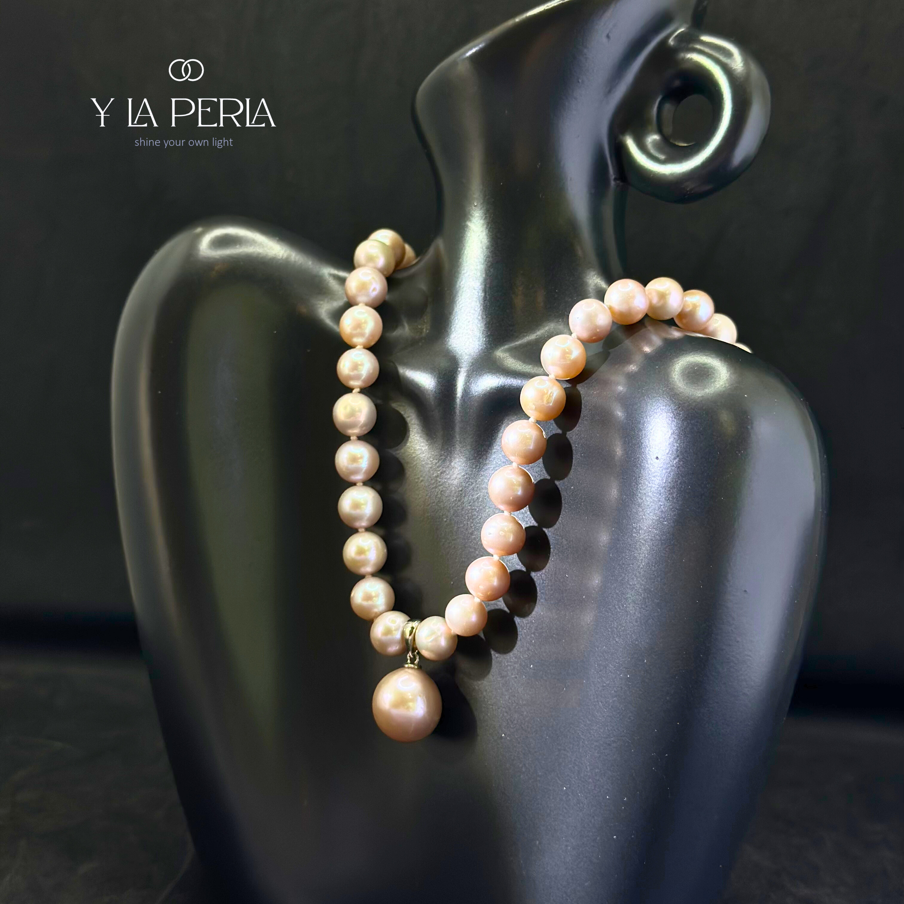 Gently wipe your pearls with a soft cloth after each wear. Avoid contact with perfumes, lotions, water, or harsh chemicals, as moisture may weaken the stringing. Always store them in our dedicated Y La Perla pouch to keep them safe and lustrous.